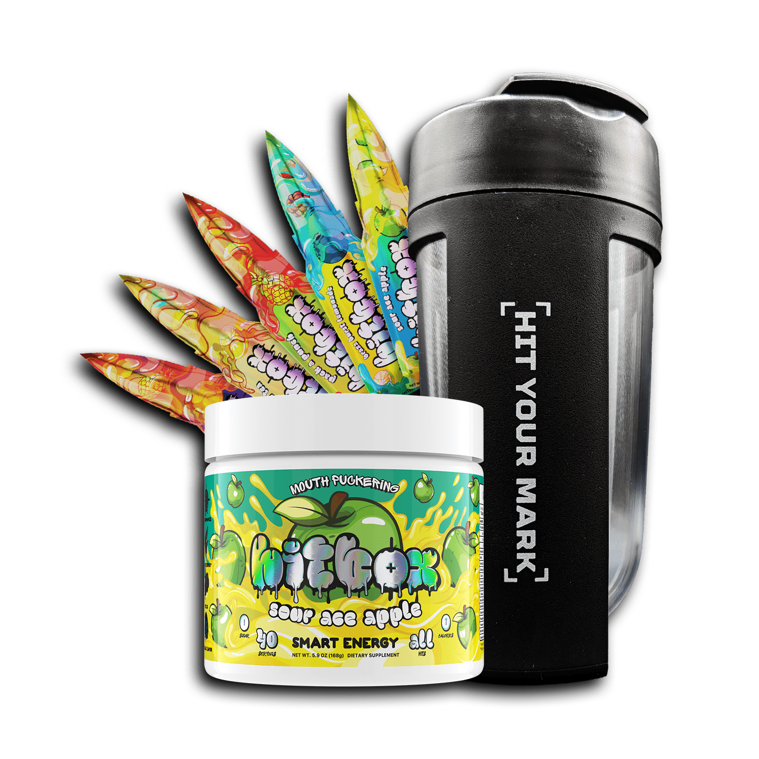 - Bursting with our mouth puckering, lip-smacking sour green apple. Like you just took a big bite outta a Granny Smith.